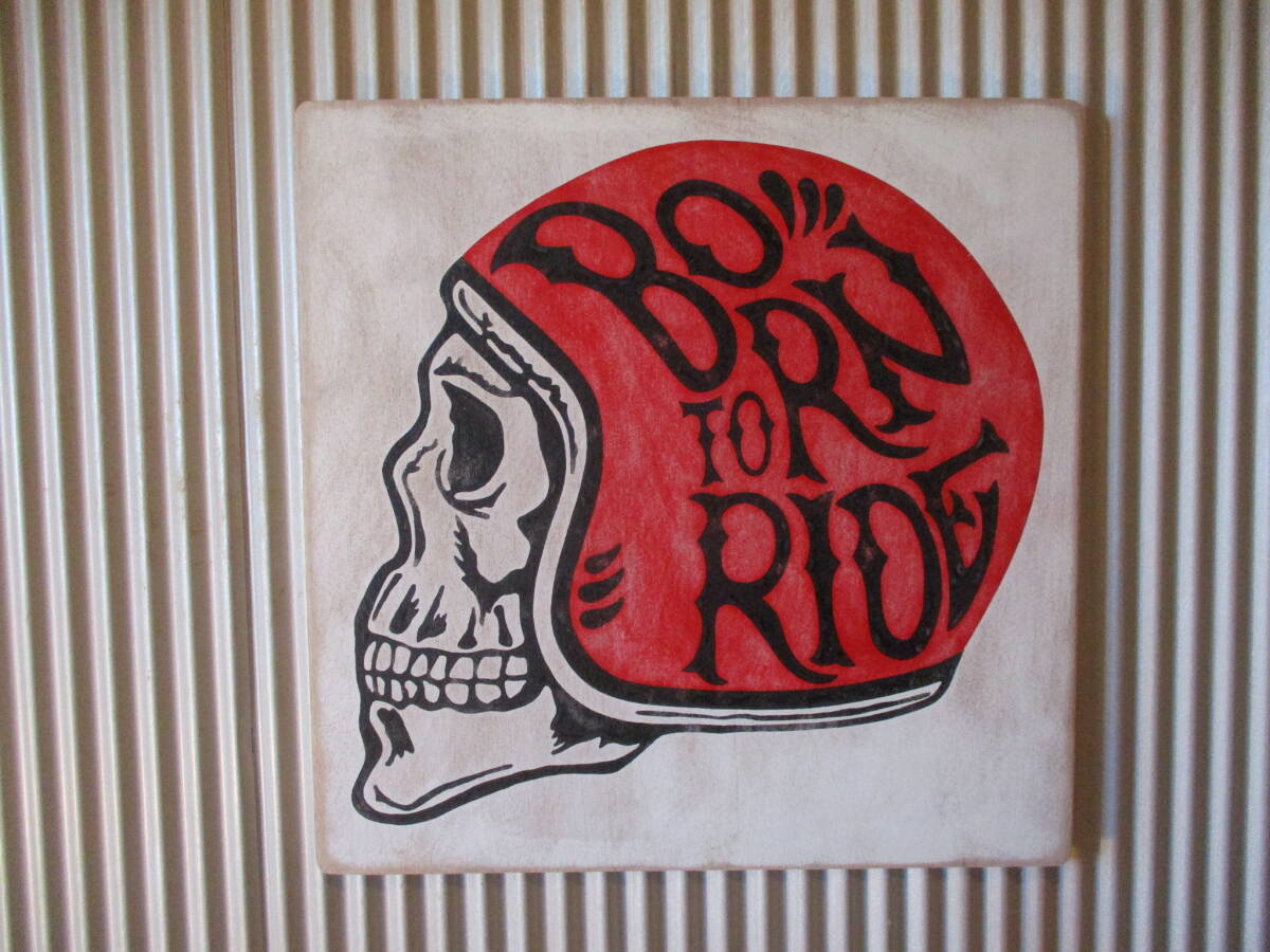 - インテリア木製看板 BORN TO RIDE検)ガレージカスタムハーレーダビッドソンHARLEYDAVIDSONBELLHELMETチョッパーUSA50s60s70s