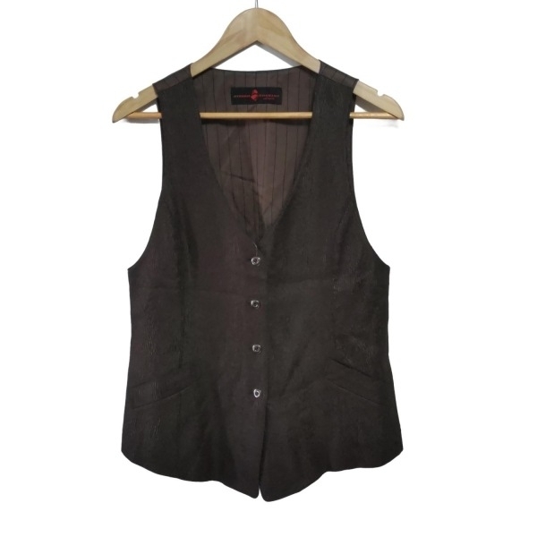- ヒロココシノ HIROKO KOSHINO ベスト サイズ9AT M - ダークブラウン×黒 レディース ストライプ 美品 トップス
