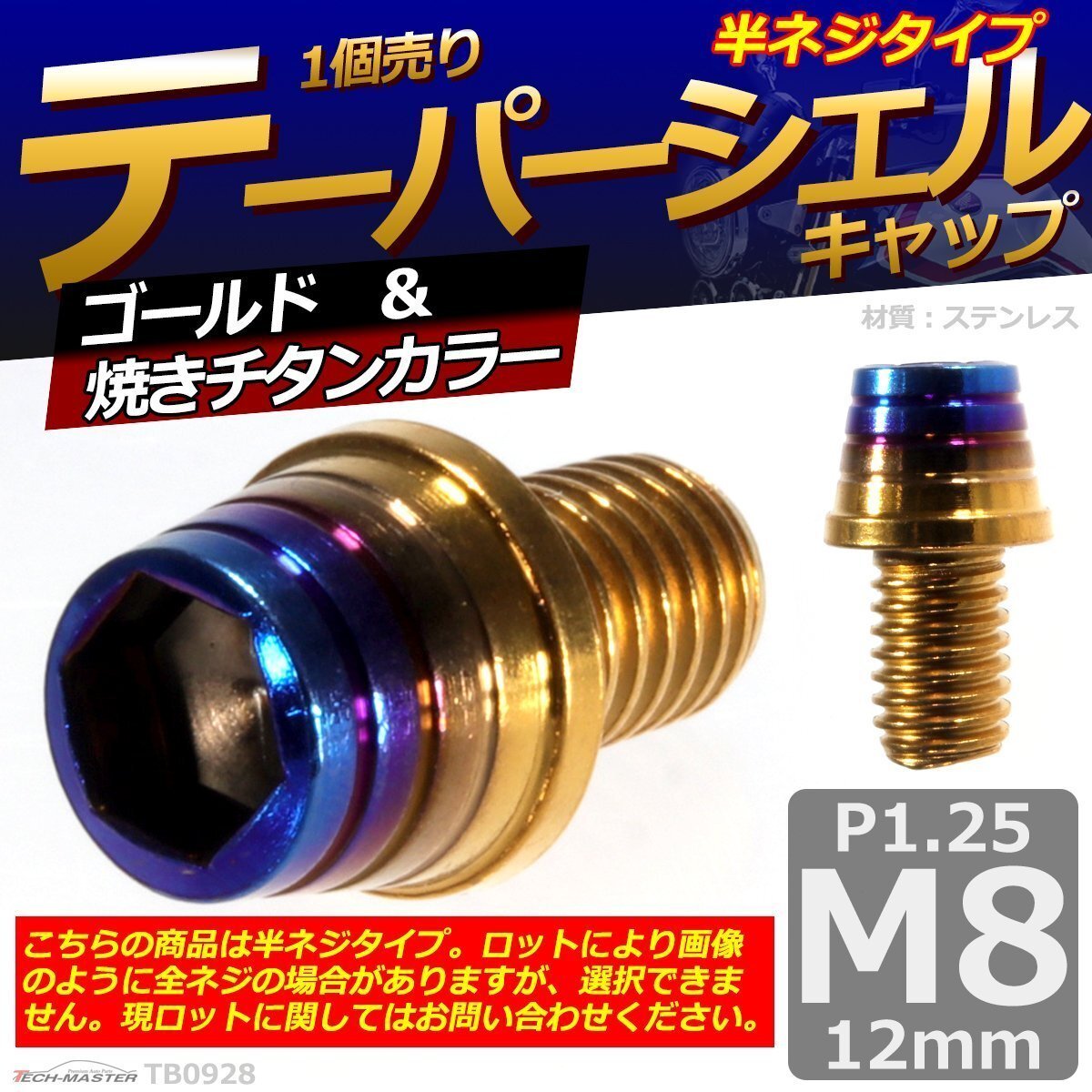 > M8×12mm P1.25 テーパーシェル キャップボルト ステンレス 車/バイク/自転車 ドレスアップ パーツ ゴールド&焼きチタンカラー 1個 TB0928