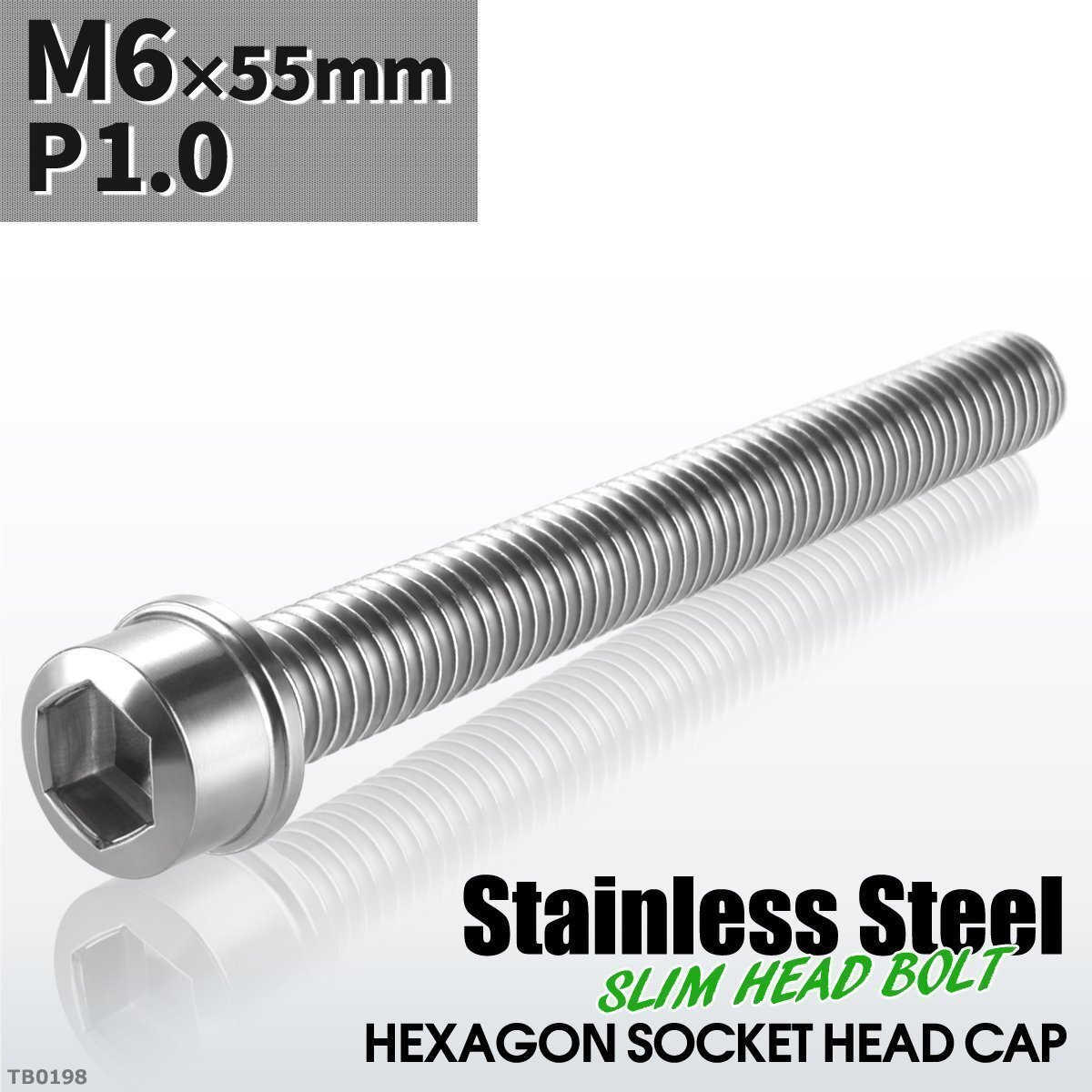 > M6×55mm P1.0 スリムヘッド キャップボルト ステンレス 車/バイク/自転車 ドレスアップ パーツ シルバーカラー 1個 TB0198