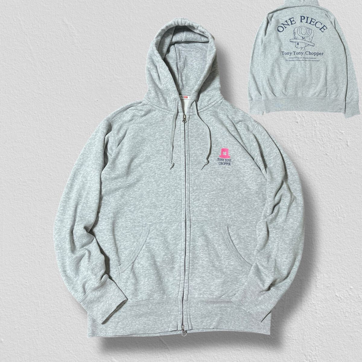 > UNQLO×ワンピース フーディー ダブルジップパーカー チョッパー グレー XL ●洗濯プレス済● ONE PIECE Tony Tony Chopper 古着/605