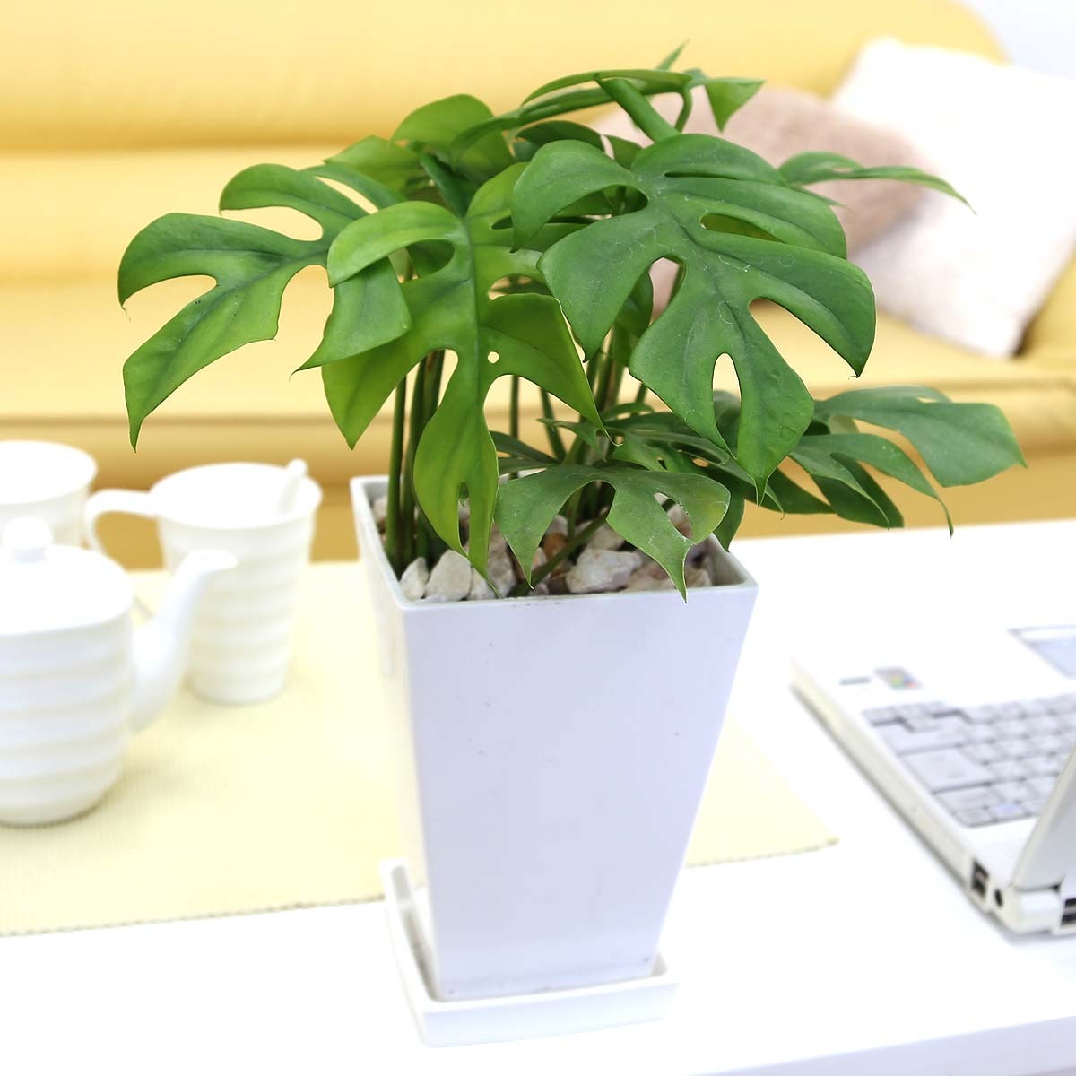 - ヒメモンステラ 5号 ホワイトスクエアプラスチック鉢+お皿付き 土の表面:化粧石 |観葉植物 風水 ギフト