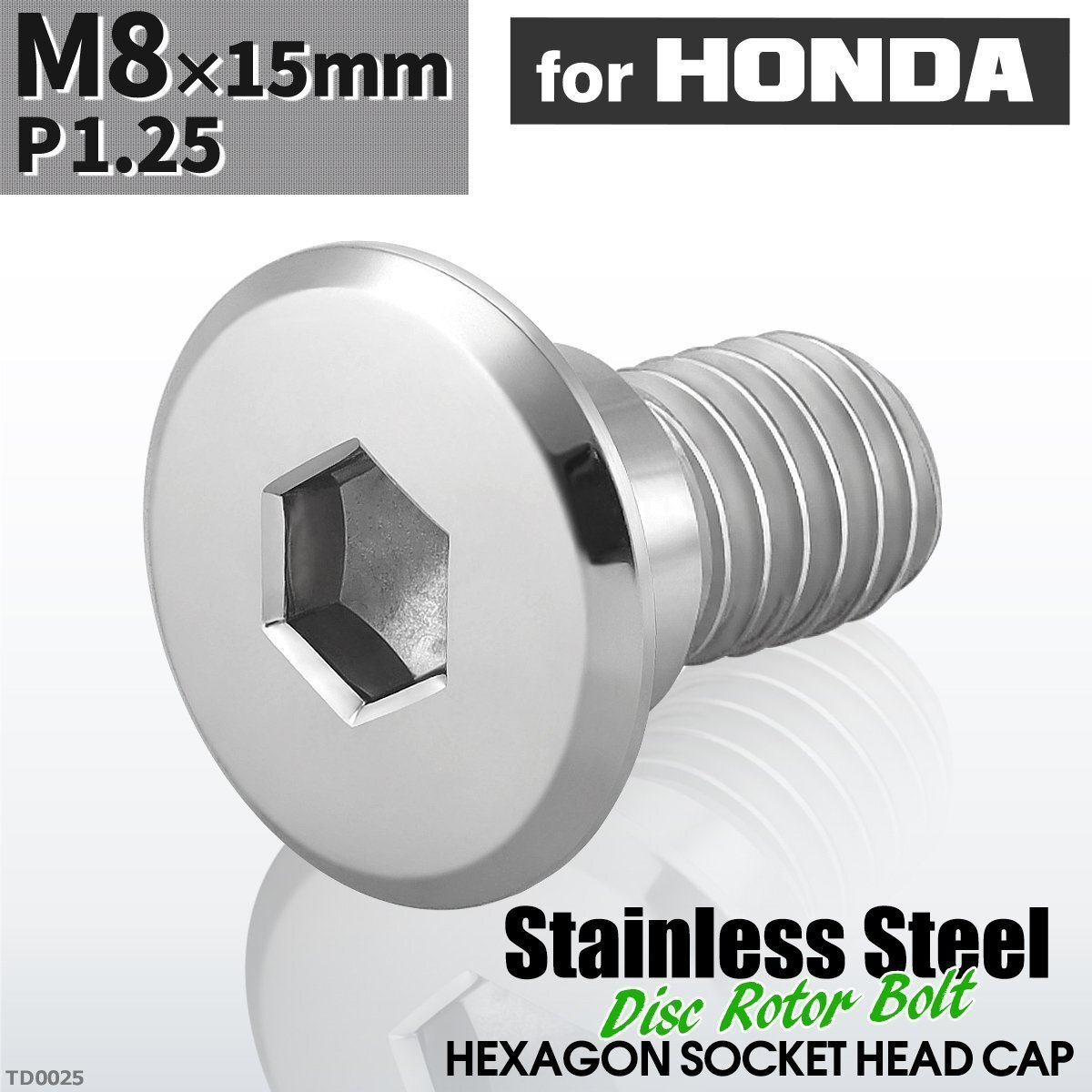 > M8×15mm P1.25 ローターボルト ステンレス フラットヘッド 六角穴付き ホンダ車用 シルバーカラー 1個 TD0025