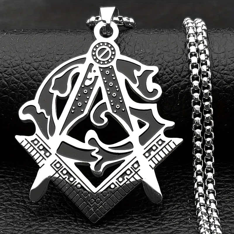 - ネックレス フリーメイソン コンパス ロゴ 4.6cm シルバー メンズ アクセサリー 大きい 金属 ステンレス おしゃれ 男性用 目立つ t8368