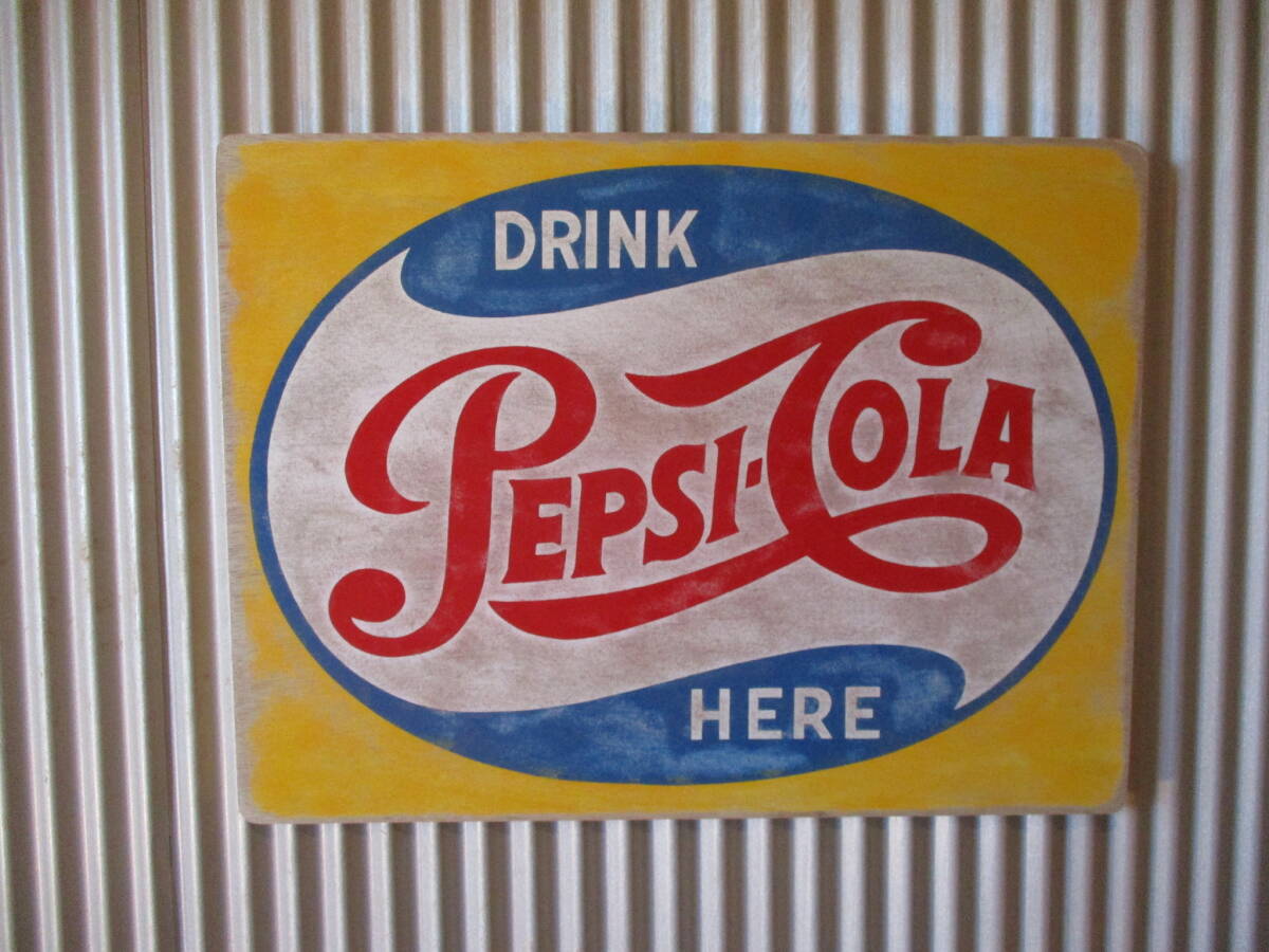 - インテリア木製看板 PEPSI検)ペプシコーラアドバタイジング企業販促ガレージハンバーガーファストフードUSA50s60s70s