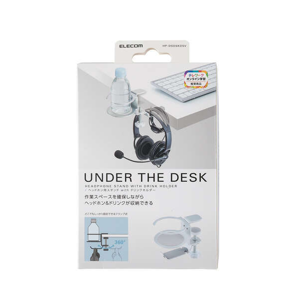 - 机裏収納ヘッドホンスタンド 作業スペースを確保しながらヘッドホンとドリンクを収納できる、ドリンクホルダー付: HP-DSDSKDSV