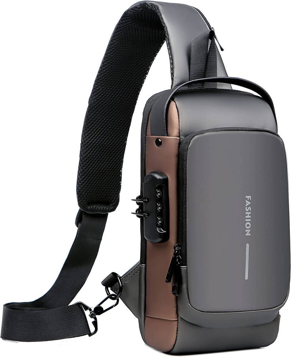 > ショルダーバッグ ボディバッグ スポーツバッグ 斜めがけバッグ 肩掛けバッグ メンズ 人気 盗難防止 USBポート 軽量 (ブラック/ブラウン)