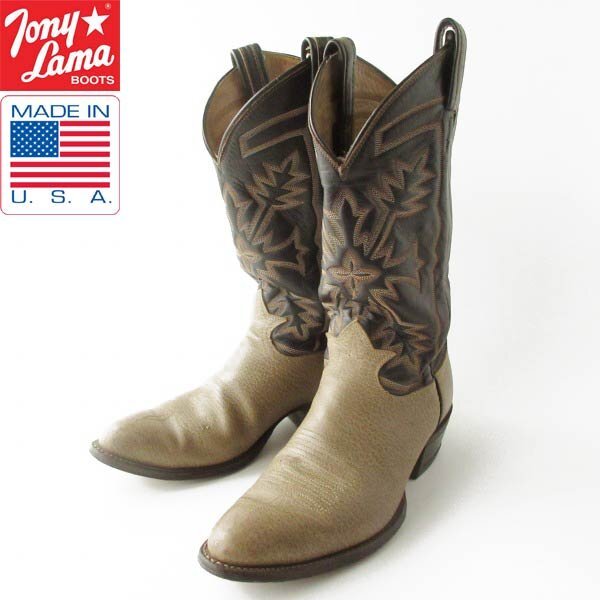 > 黒タグ USA製 Tony Lama トニーラマ ウエスタンブーツ 27cm 茶系×ダークブラウン系 アメリカ製 ビンテージ D151-32-0006ZV