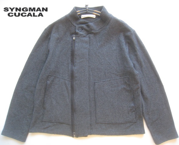 > 美品スペイン製!!シグマンクカラ SYNGMAN CUCALA*立ち襟フリースダブルジップジャケット・ライダース M グレー 定価4万