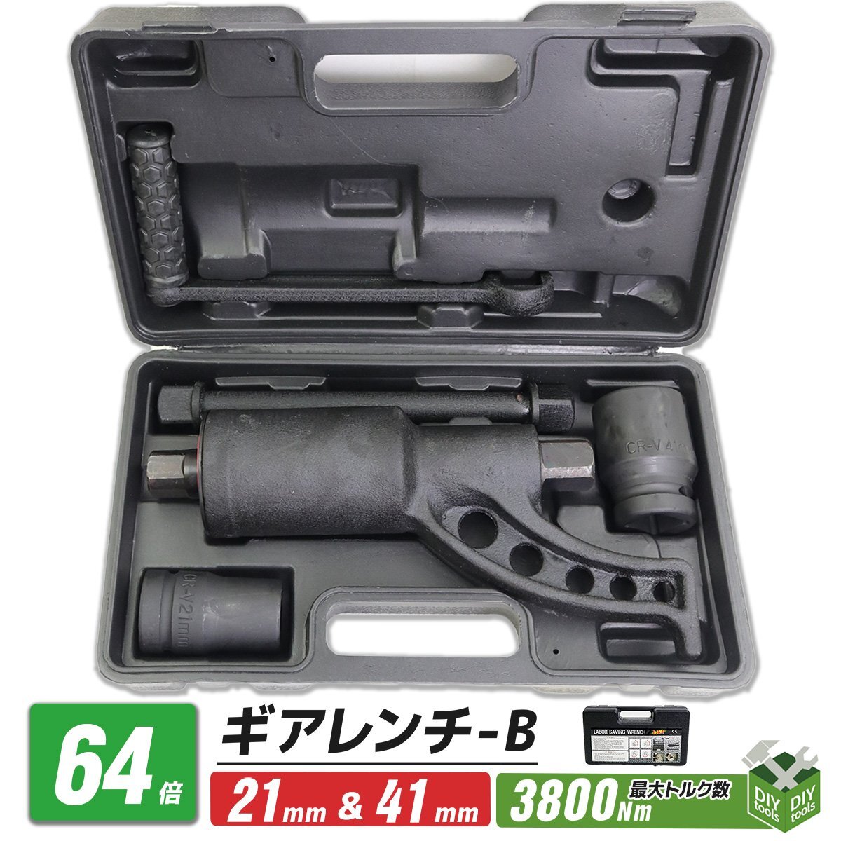 - タイヤ交換用 64倍ギアレンチB (21mmから41mm) レンチ バス トラック等 大型車タイヤホイール ナット交換に ●新品