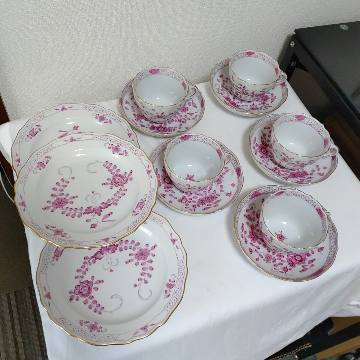 > 【貴重レア】マイセン インドの花 リッチピンク カップ&ソーサー4客セット 中皿3枚 カップソーサー ピンク 金彩 0904-DE間-TA12