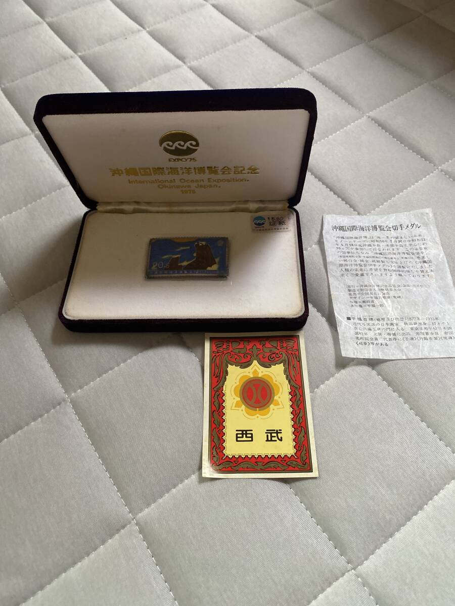 - 沖縄国際海洋博覧会記念切手型七宝メダル 純白金、純金、純銀仕上げ