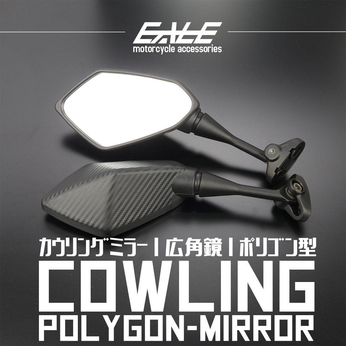 - カウリングミラー 広角鏡 多角形 カウルミラー ポリゴン カーボン柄 左右セット S-1154