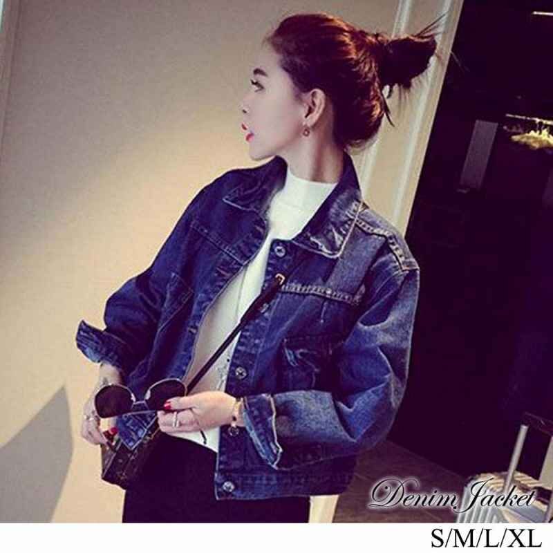 - ショート デニム ジャケット レディース アウター 長袖 無地 春夏 羽織る XL ワンカラー
