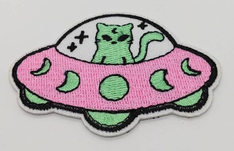 - 送料無料 猫 UFO 未確認飛行物体 UMA アイロン のりつき 刺繍 ワッペン アップリケ アメリカン雑貨 スマアク