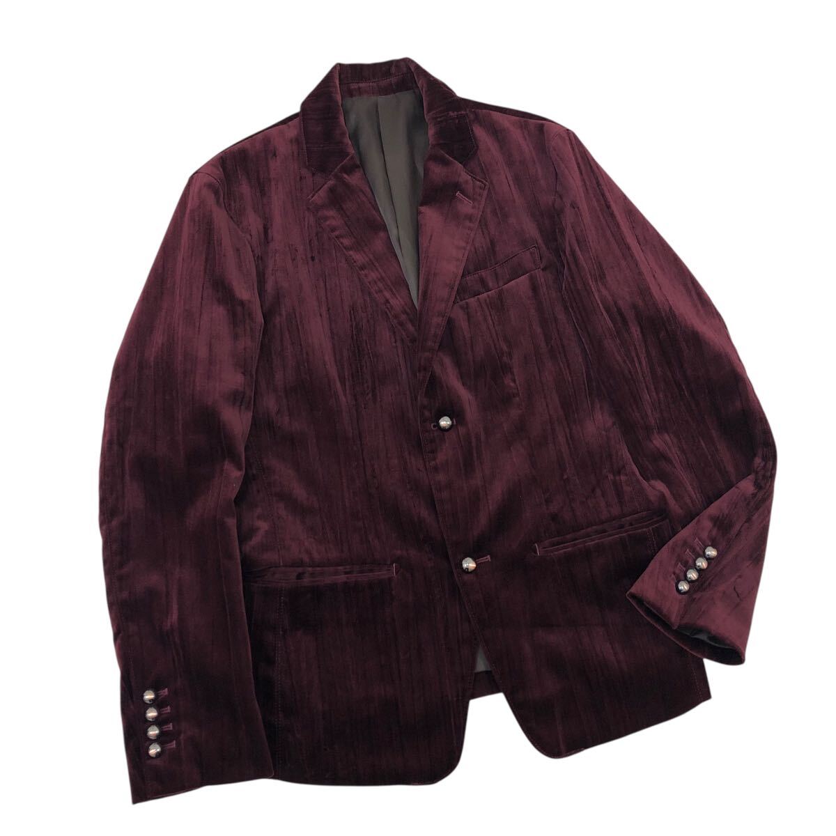 > 9m647-4 MEN'S BIGI メンズビギ ベロア テーラード ジャケット ブレザー 上着 羽織り トップス ボルドー メンズ 紳士 02 日本製