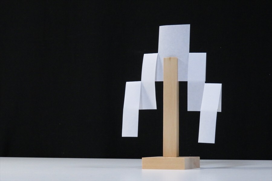 - 御幣 木曽ひのき製 小サイズ ■ 紙垂付 ■ 神具 神棚 ■寸法 高さ 20cm 幅12.8cm 奥行 4.5cm ■ 幣束立て 幣束立 幣束 神棚 金幣 金幣芯