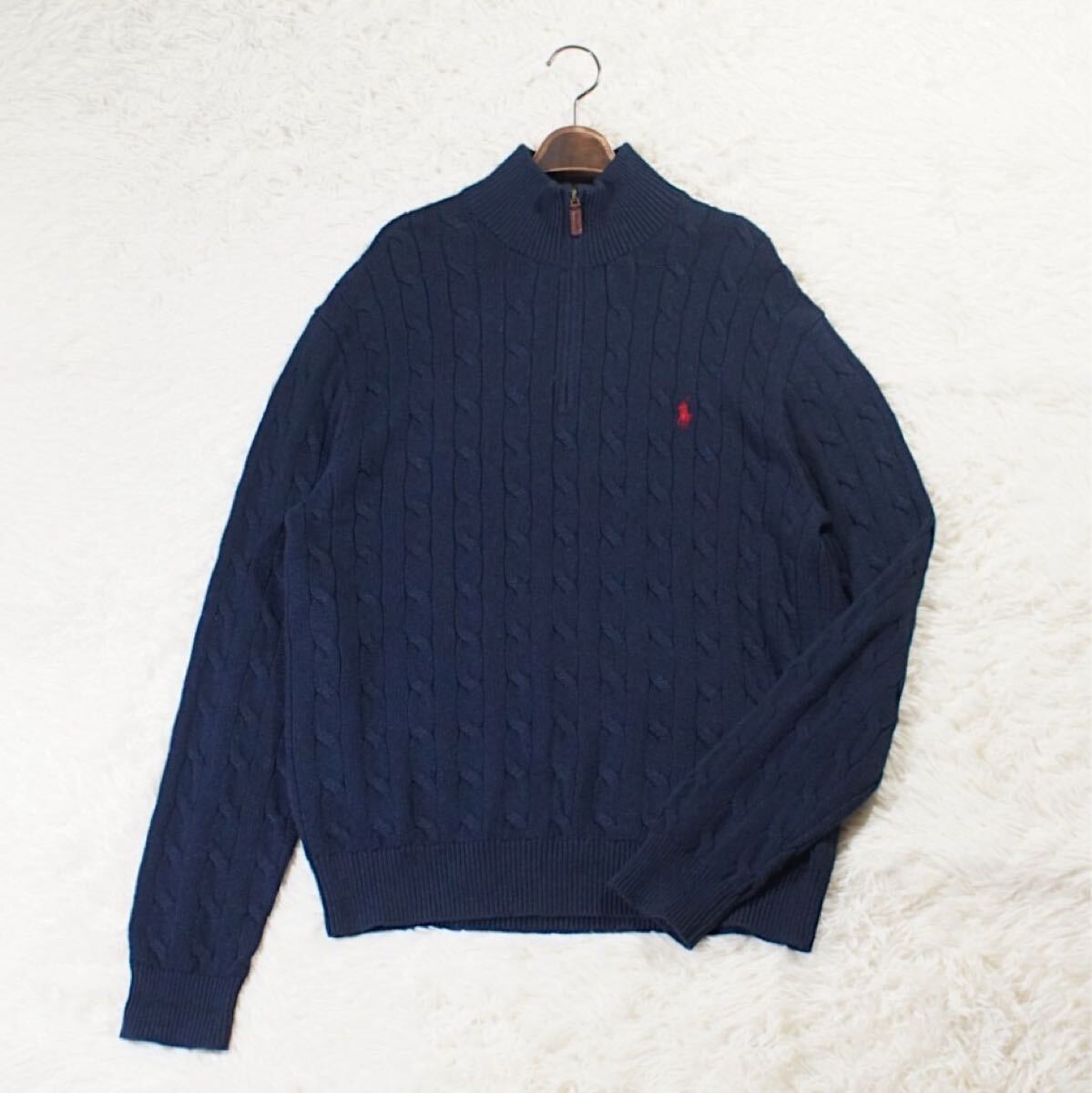 - 即決 ケーブル編み《POLO RALPH LAUREN》ハーフジップニット(L)ネイビー ポニー 人気 ポロラルフローレン セーター コットンニット