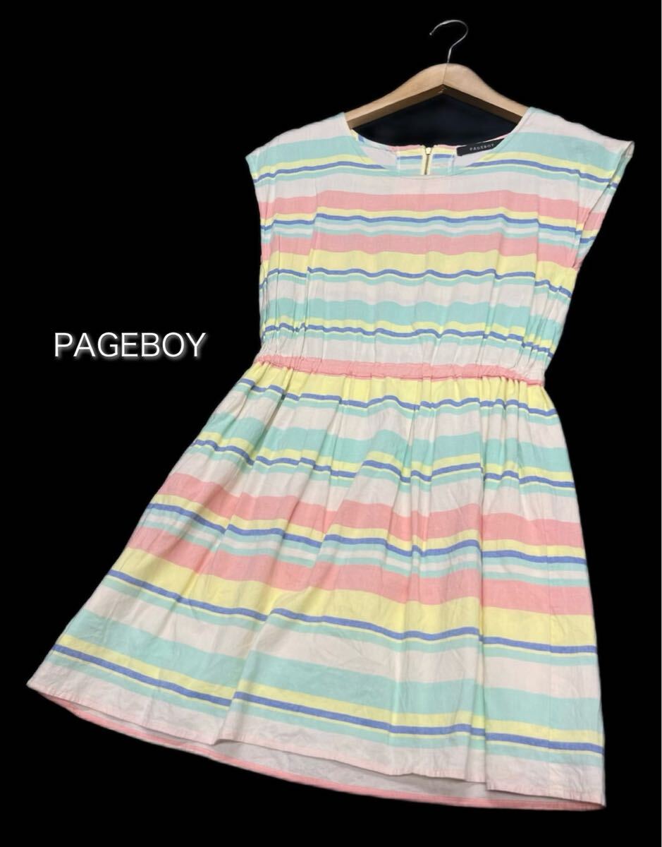 - PAGEBOY★ページボーイ★(F)レトロポップ マルチボーダー 半袖 ミニ ワンピース