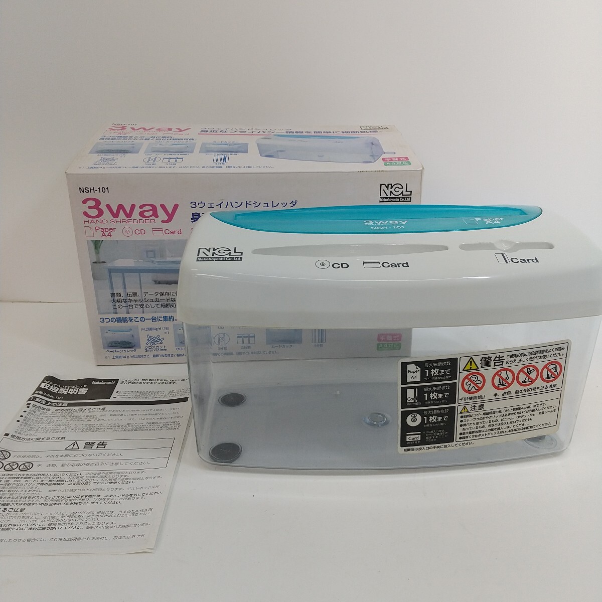 - K23 中古 A4対応 手動 3ウェイハンドシュレッダー ブルー ナカバヤシ NSH-101