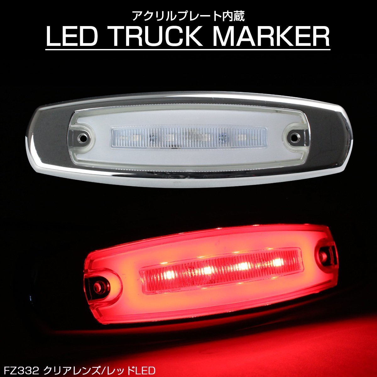 - LED マーカーランプ 面発光 クリアレンズ レッドLED アクリルプレート内蔵 トラック サイドマーカー メッキ FZ332