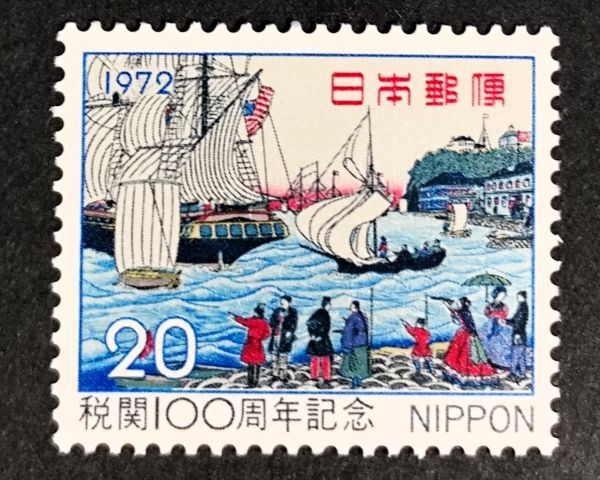 > [25090424]【税関100年周年記念】単片「横浜波止場と異人館 安藤広重」浮世絵 20円 1972年発行 美品