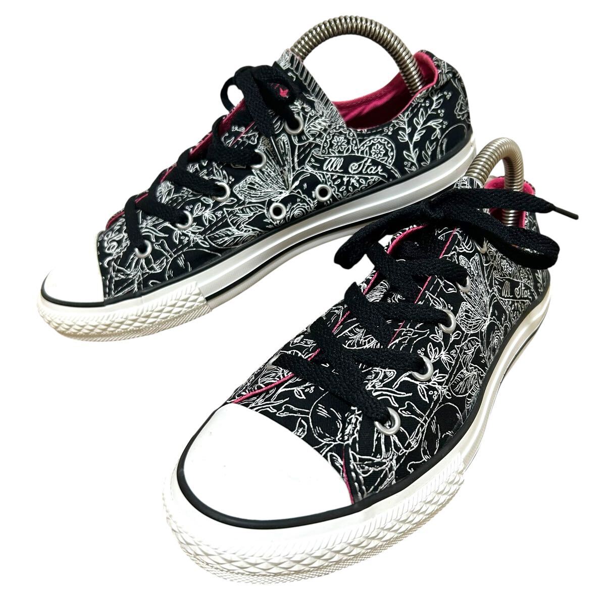 > ※YL4 CONVERSE(コンバース) ローカットキャンバススニーカー 総柄 スカル ブラック 22cm