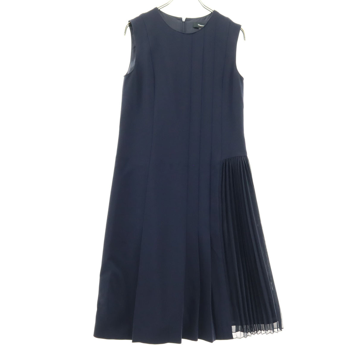 theory セオリー 日本製 ノースリーブ 膝丈ワンピース ネイビー プリーツスカート レディース拍卖