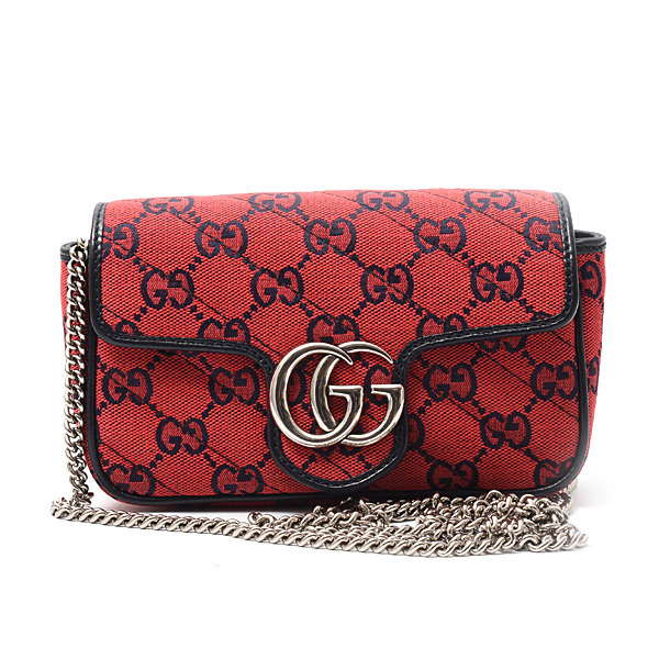 > グッチ バッグ レディース GGマーモント ミニ チェーンショルダーバッグ キャンバス レッド系 GUCCI 661332 中古