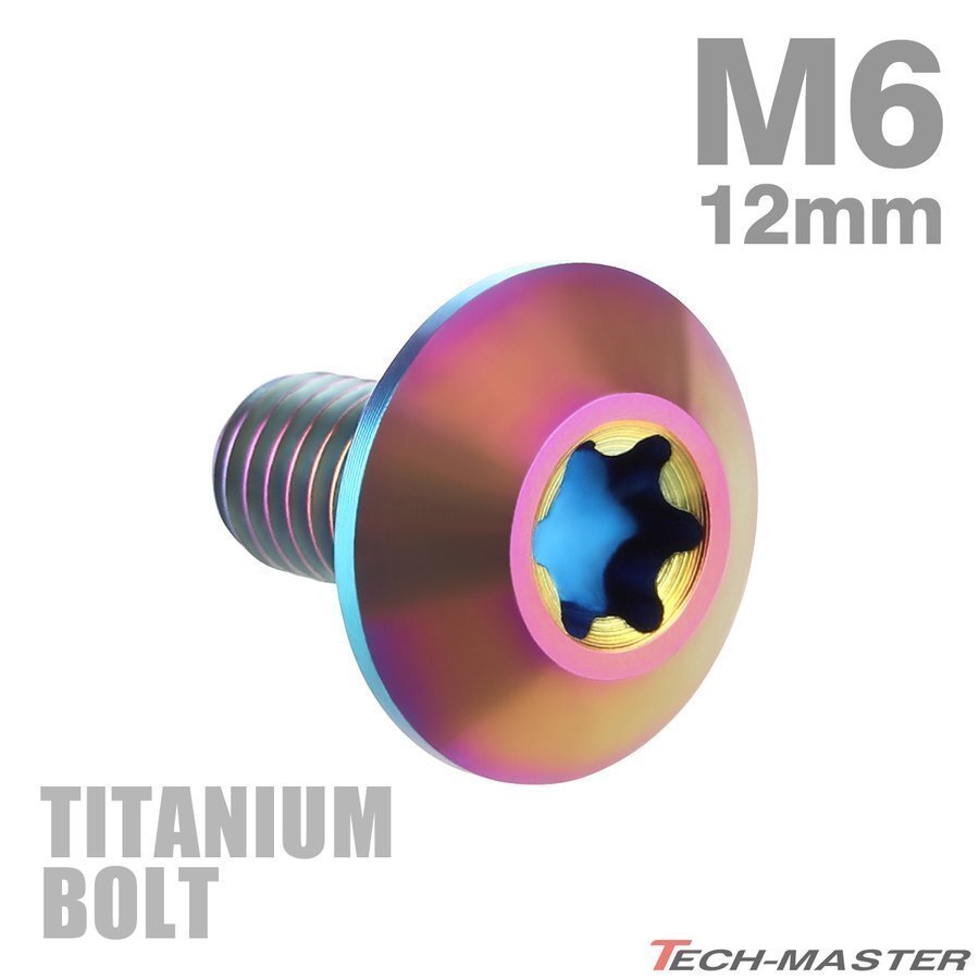 > M6×12mm 1.0 頭部径14mm 64チタン合金 テーパーヘッド トルクス穴 ボタンボルト 焼きチタンカラー 虹色 車/バイク 1個 JA626