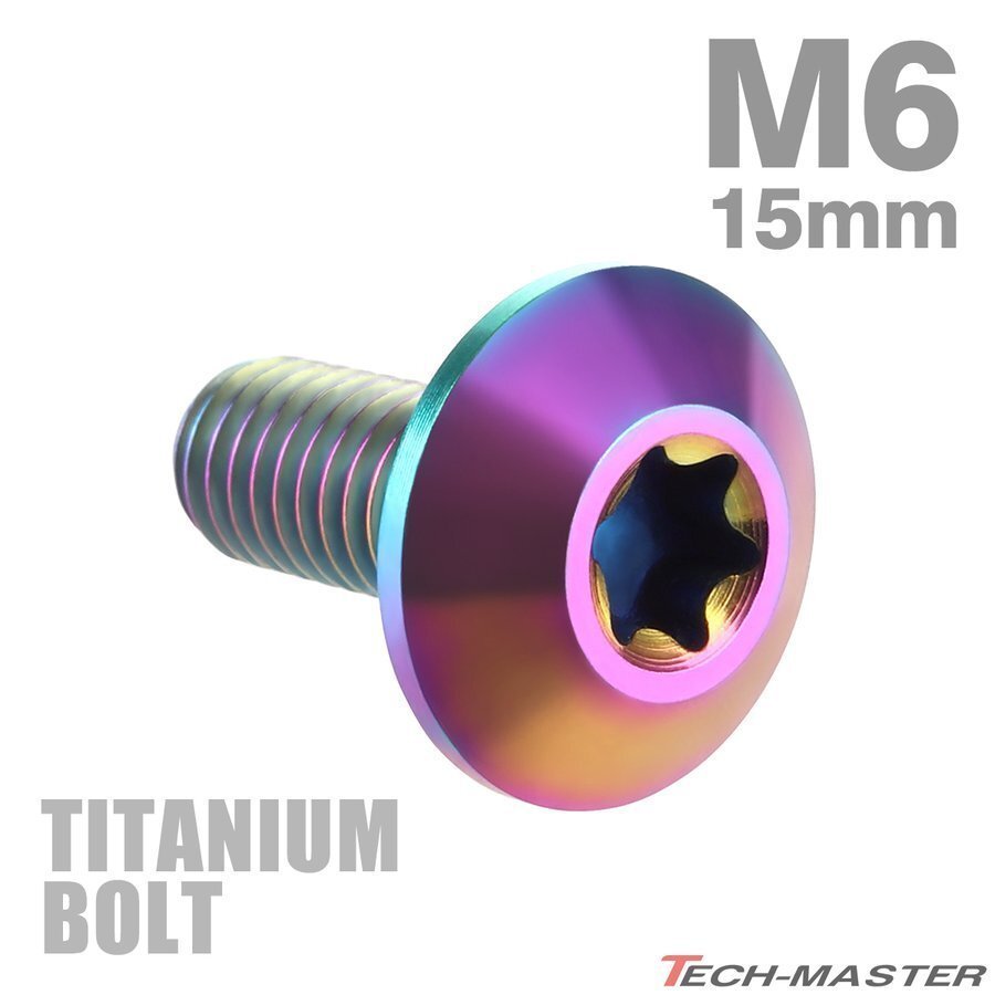 > M6×15mm 1.0 頭部径14mm 64チタン合金 テーパーヘッド トルクス穴 ボタンボルト 焼きチタンカラー 虹色 車/バイク 1個 JA629