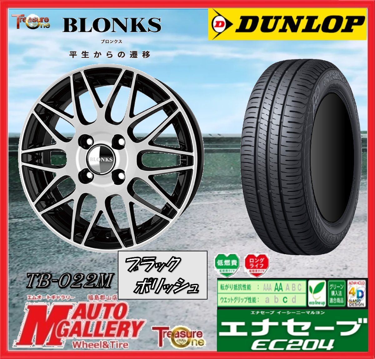 - 郡山店★サマータイヤホイールSET★ブロンクスTB-022M 15インチ 5.5J 4H100+43& DL エナセーブ EC204 195/65R15 91H