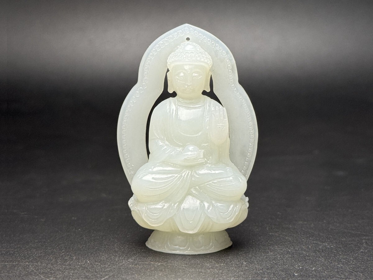 - 「清時代 和田玉 白玉彫り 如来仏祖 吊墜」極細工 裝身具 賞物 中国古美術 旧蔵出