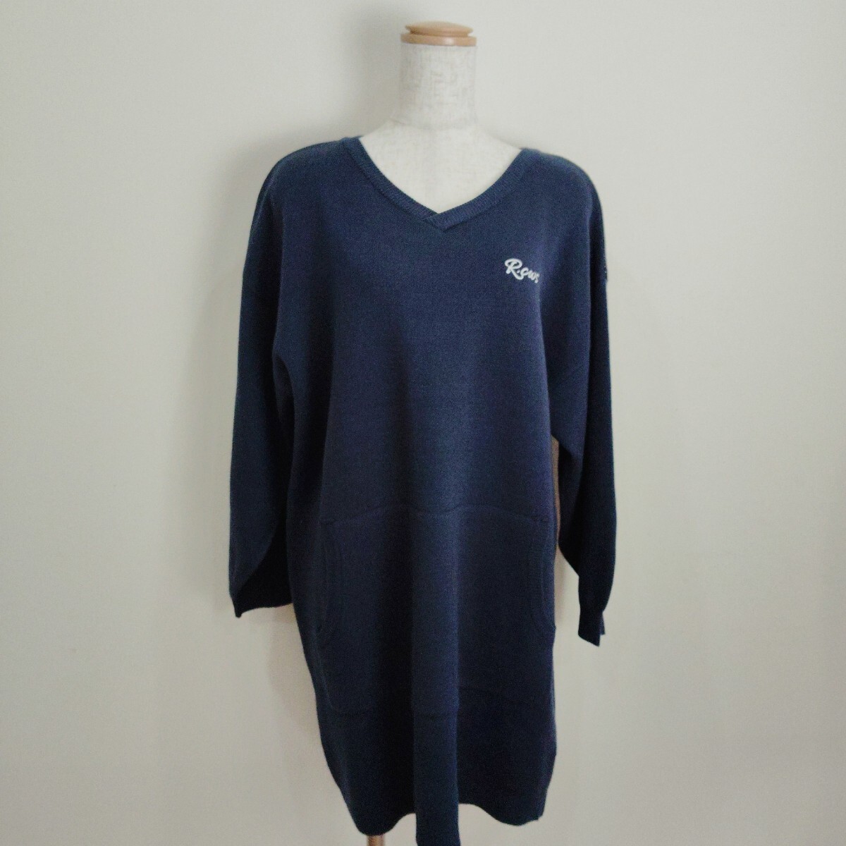 - 0905/F/RODEOCROWNS レディース 長袖ニット ワンピース Vネック ネイビー