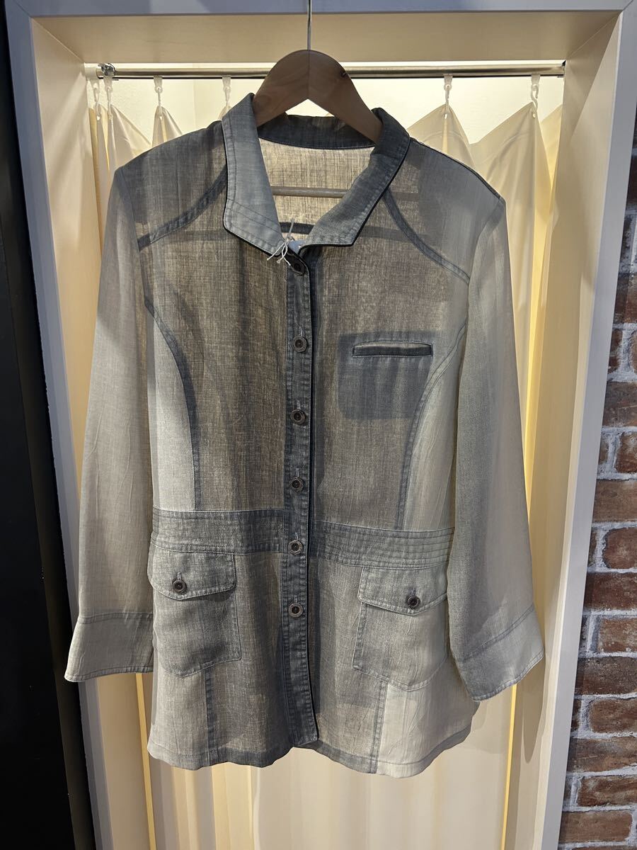 - Y-150 シアーコートシアーシャツカバーオールシースルー長袖グレー系薄手 サイズL