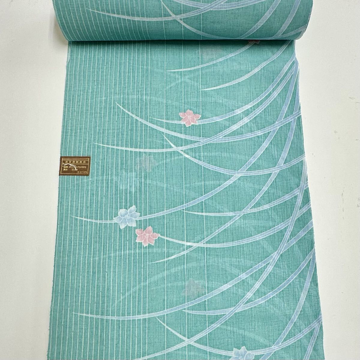 - ◆反司◆a4549 化繊 ポリエステル 交織? 小紋 着物 着尺 羽尺 呉服屋 反物 未仕立て リメイク 新品 紋意匠など洗える着物など