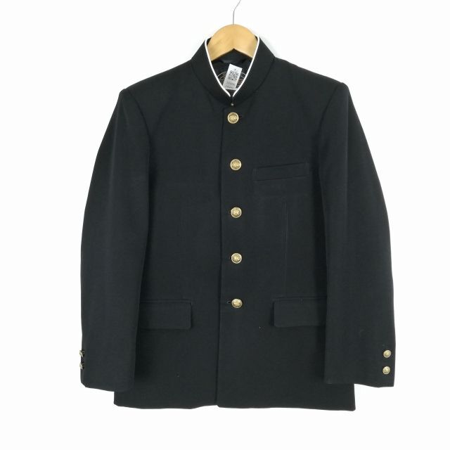 - 学生服 学ラン 160A 男子 上着 ウール混 標準型学生服 ラウンドカラー カシドス 黒 中古 ランクC a3 JJ5698