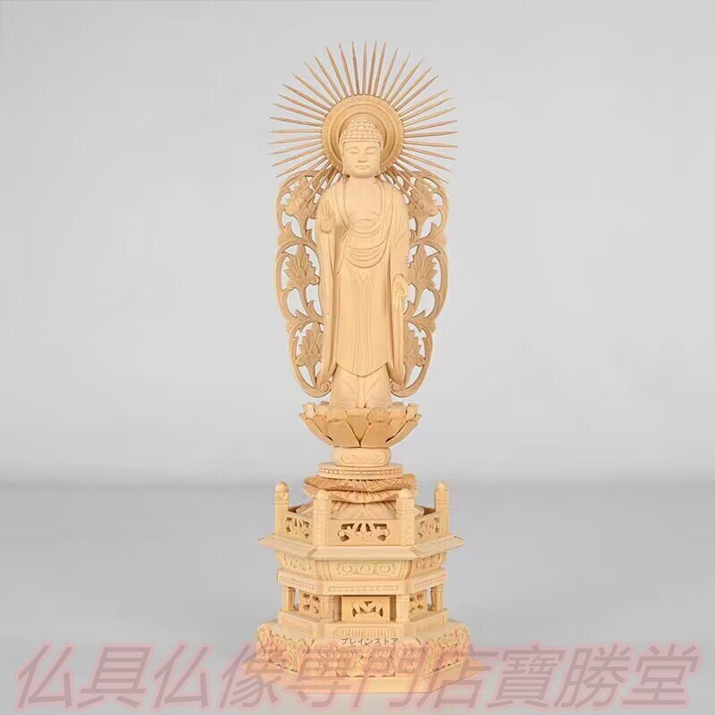 - 【寶勝堂】仏像 阿弥陀如来 立像 六角台座 浄土真宗本願寺派 ご本尊様 守本尊 本尊 仏様 仏壇 モダン仏壇 仏事 法事 フィギュア (3.5寸)