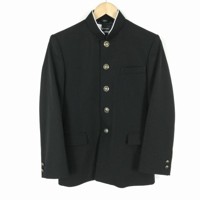 - 学生服 学ラン 155A 男子 カンコー Dry Wash 上着 ウール混 標準型学生服 ラウンドカラー カシドス 黒 中古 ランクB a3 JJ5303