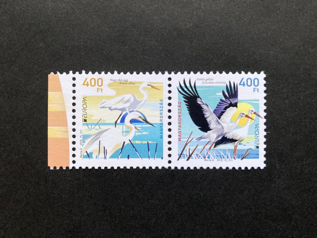 - 外国切手: ハンガリー切手 「(2019年 ヨーロッパ切手)共通テーマ・国鳥」(ダイサギとシュバシコウ) 2種連刷 未使用