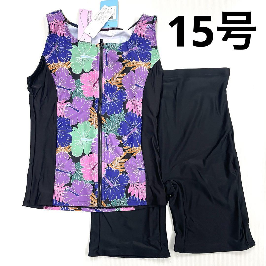 - 新品64161 15号LL ビーチフラワー レディースフィットネス ノースリーブ水着 スイムウエア ジム水着