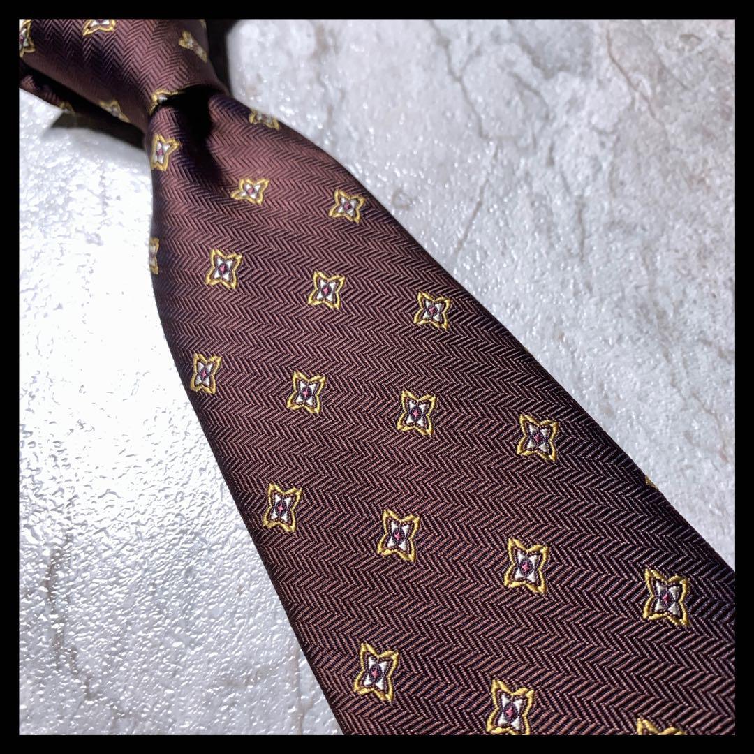 - フェアファクス ブランド ネクタイ ブラウン ヘリンボーン小紋柄 シルク 8cm