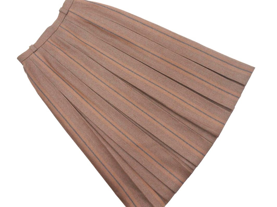 - Leilian レリアン ウール100% ストライプ プリーツ スカート size7/茶 ◇■ ☆ fia4 レディース