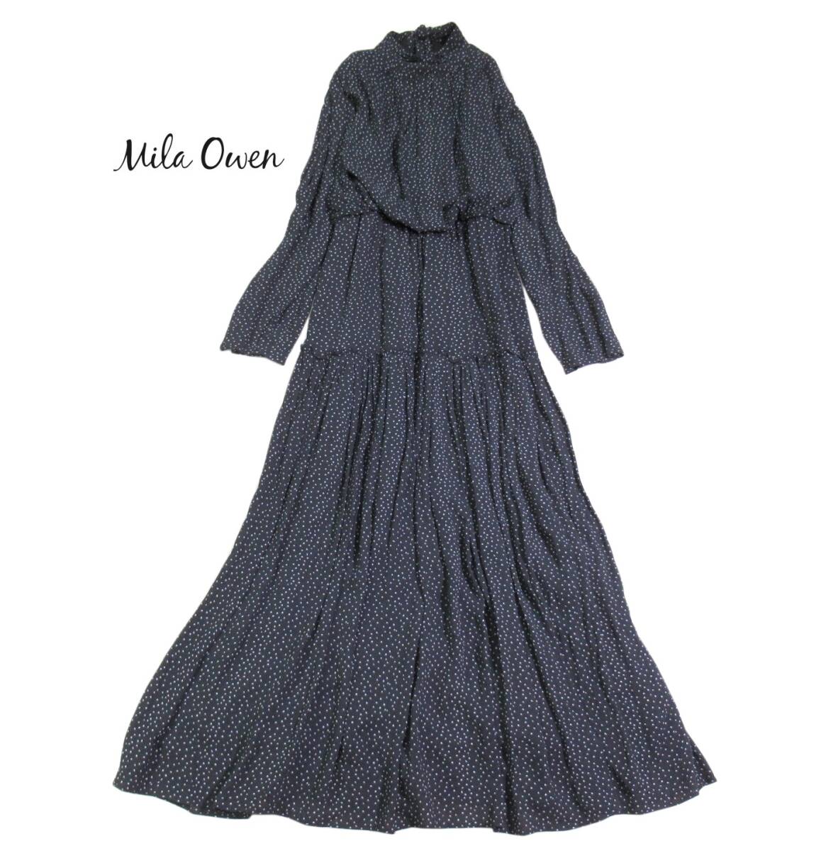 - Mila Owen ミラオーウェン ドット バックリボン ブラウジング ロング フレア ワンピース 1