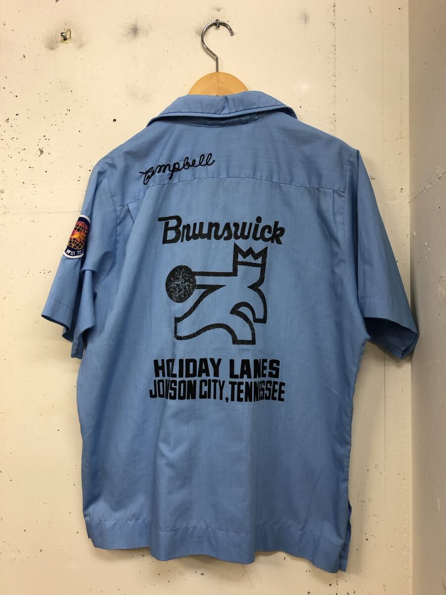 > 70s KING LOUIE キングルイ 半袖 ボーリングシャツ M 水色 ビンテージ 刺繍 フロッキープリント USA古着