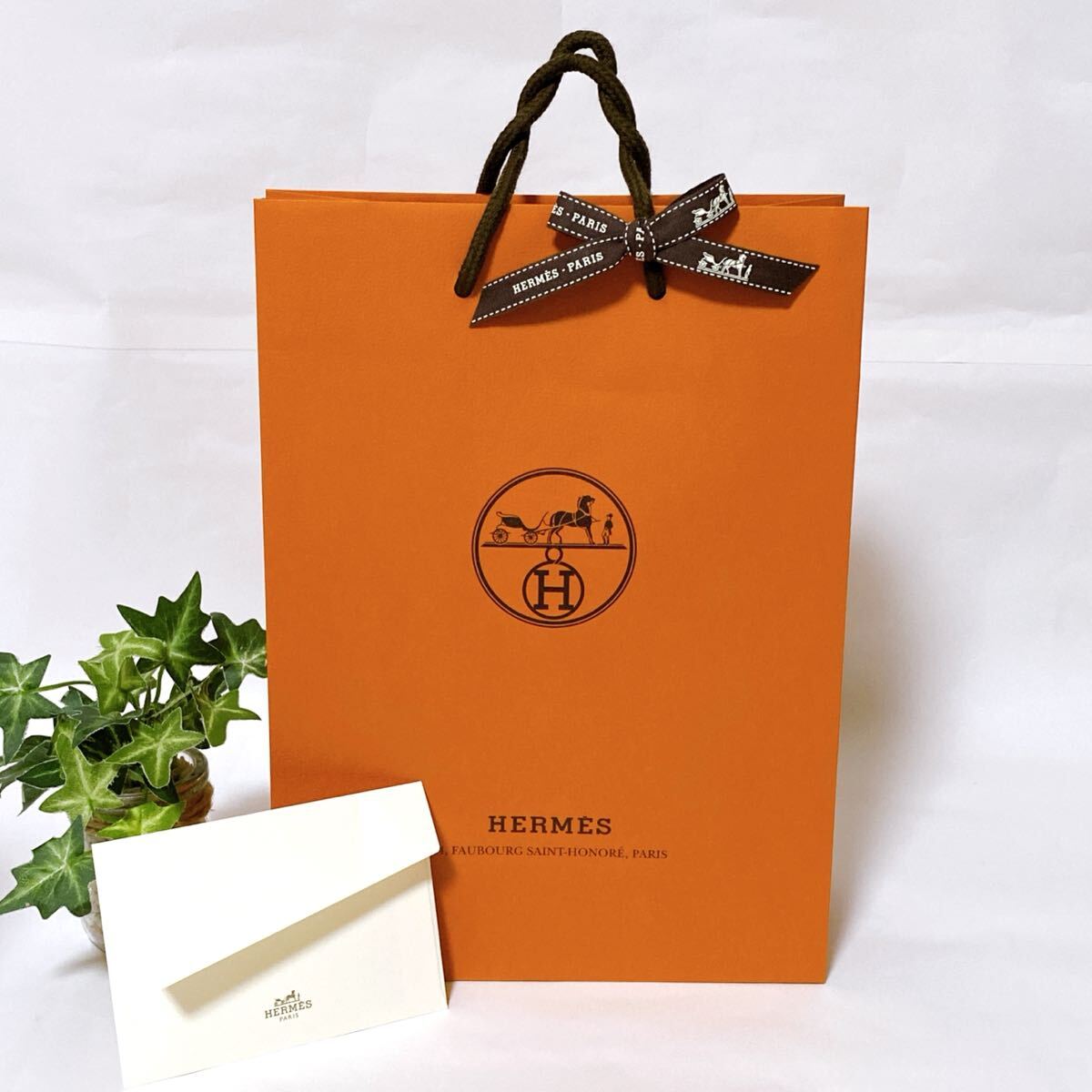 - エルメス 「HERMES」ショッパー ミニ封筒付き (6019) 正規品 付属品 ショップ袋 ブランド紙袋 財布箱サイズ 長財布箱可 折らずに配送