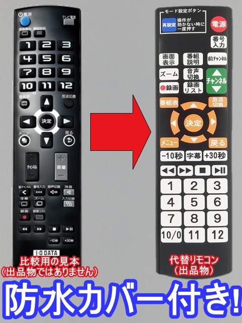 - 【代替リモコン46】防水カバー付 I.O DATA HVT-BRC2 互換 送料無料 (HVTR-BTL HVTR-BCTL用) アイ・オー・データ
