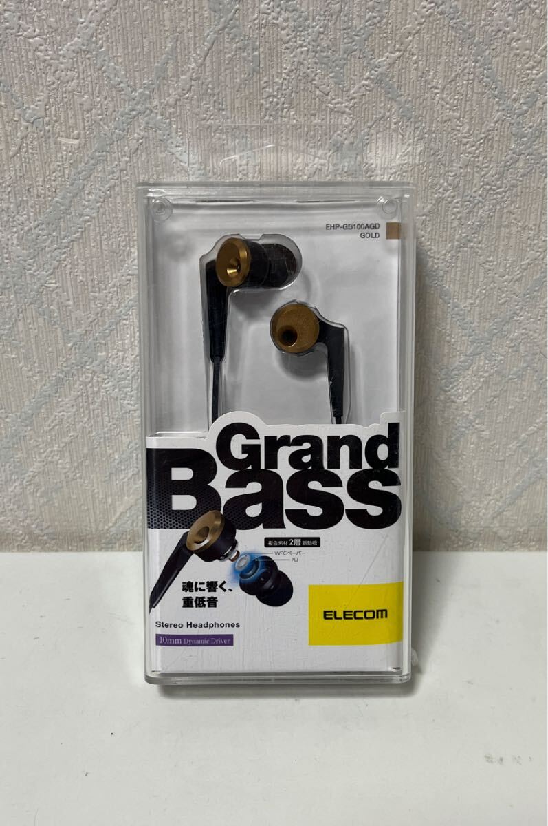 - 709i0611 エレコム ステレオ イヤホン カナル φ10mm ドライバー 重低音 GrandBass ゴールド EHP-GB100AGD