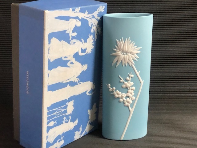 - ◎ウェッジウッド ターコイズジャスパー 綺麗な花瓶 一輪 元箱付◎z52希少色