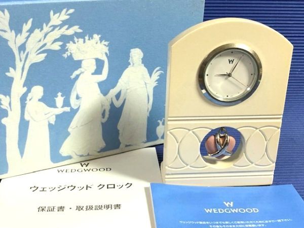 - ◎ウェッジウッド 金属製置き時計 稼動品 ピンクジャスパーハート飾り◎zz49箱付